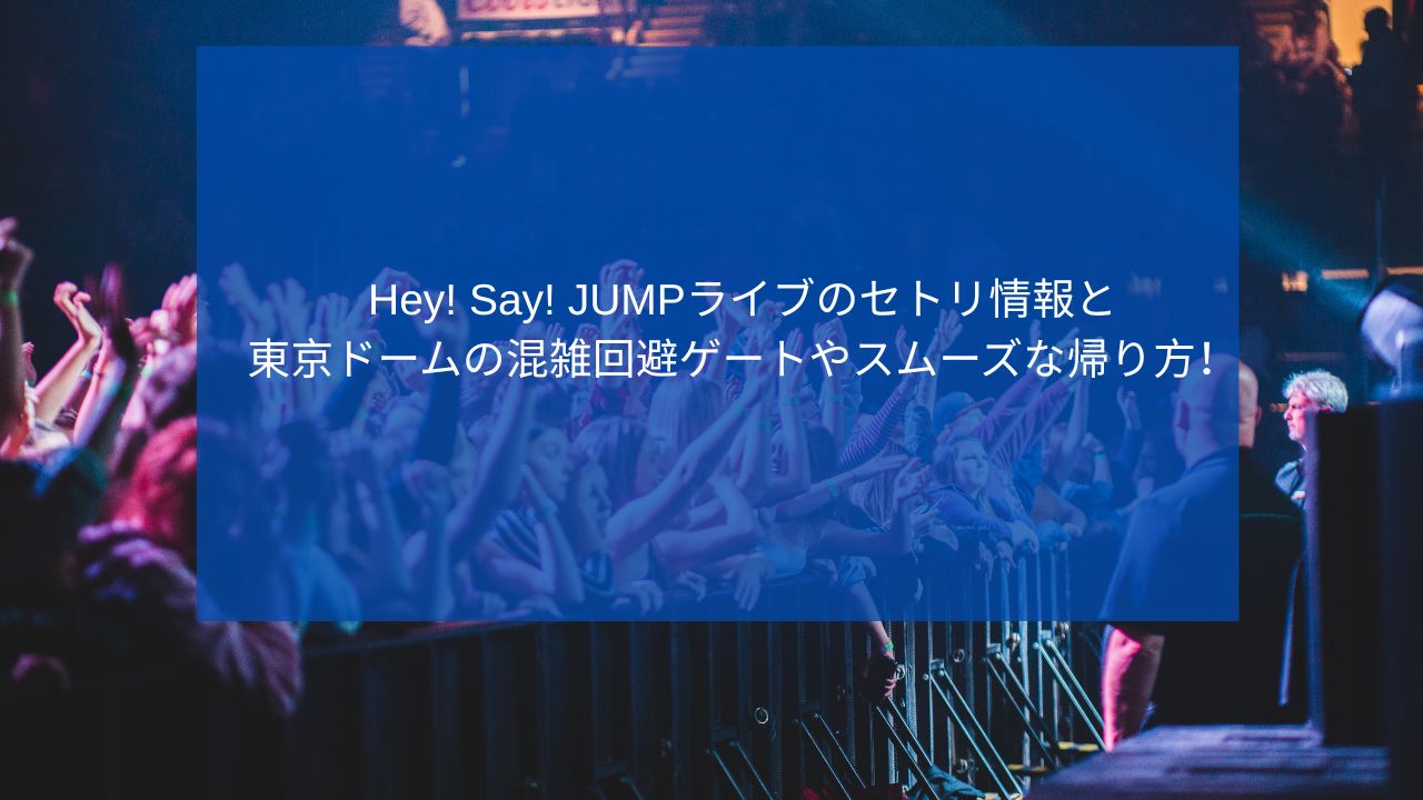 本記事では、Hey! Say! JUMPライブのセトリ情報を中心に、東京ドーム公演ならではの見どころやファンの感想、さらに多くの人が悩みがちな東京ドームの混雑回避ゲートやスムーズな帰り方まで詳しく解説しています。